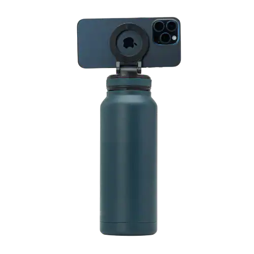The magnetic strength is powerful enough to keep the phone securely in place, whether on a flat surface, at the gym, or at a desk. This system allows users to attach their phone instantly to the bottle, making it easy to watch videos, follow workouts, or check notifications without any additional phone stand.